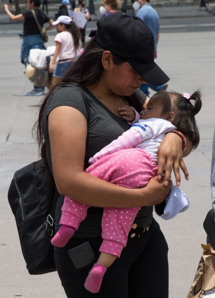 “A mi bebé me lo cuida mi familia, a veces doblo turno y se queda con él mi mamá o mis hermanas porque no tengo las prestaciones para dejarlo (en una guardería)”, comenta Viridiana de 20 años que trabaja en una farmacia.