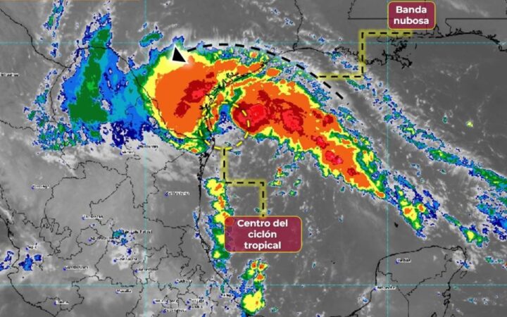 Conagua advirtió que en su paso por dichos estados existen condiciones para la formación de torbellinos o tornados, así como trombas marinas en las costas de Tamaulipas.
