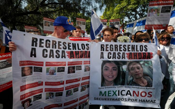Cientos de manifestantes mexicanos pidieron este domingo que Hamás libere a los dos connacionales que el grupo tomó como rehenes durante una marcha a favor de Israel.