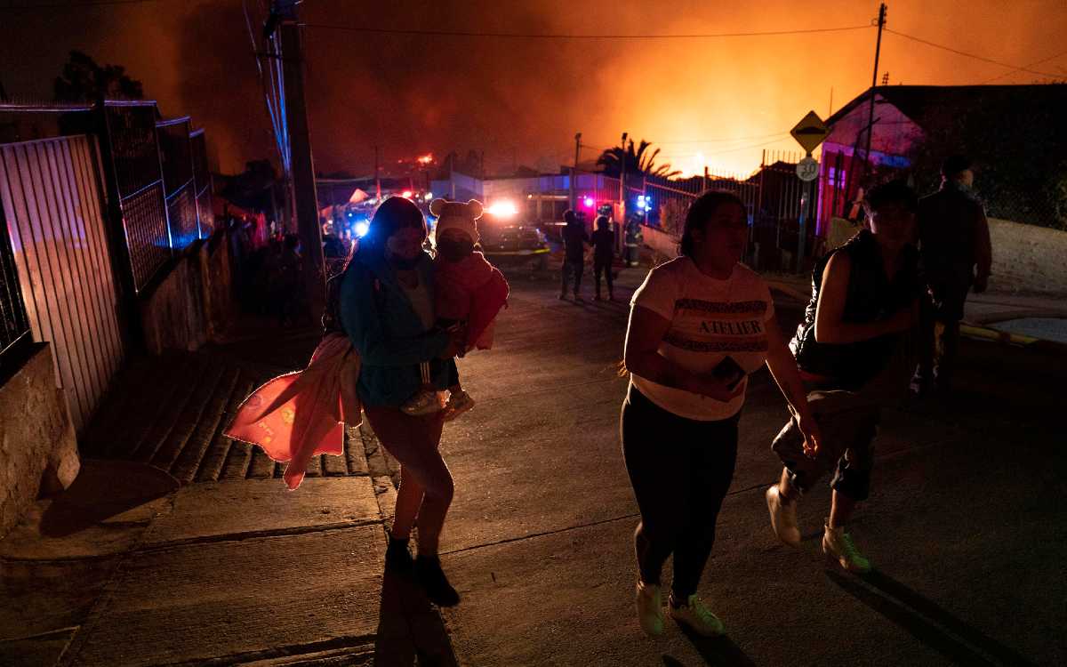 “Es un incendio que se extiende como mucha agresividad y rapidez. Hasta ahora se estima que se han quemado 110 hectáreas y por información que se entrega a través de Bomberos de Chile se estima una afectación y destrucción de 200 viviendas”, dijo a periodistas tras una reunión de emergencia.
