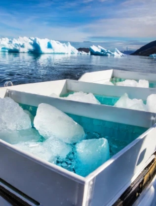 El hielo, ya desprendido de los icebergs formados hace cientos de miles de años, es recogido del océano por la empresa Artic Ice, que lo almacena en compartimentos refrigerados y lo transporta en barco a los Emiratos Árabes Unidos. En Dubái, este ‘manjar’ se encuentra en bebidas en bares y hoteles de lujo, y también se puede presentar como una atracción separada en la decoración.