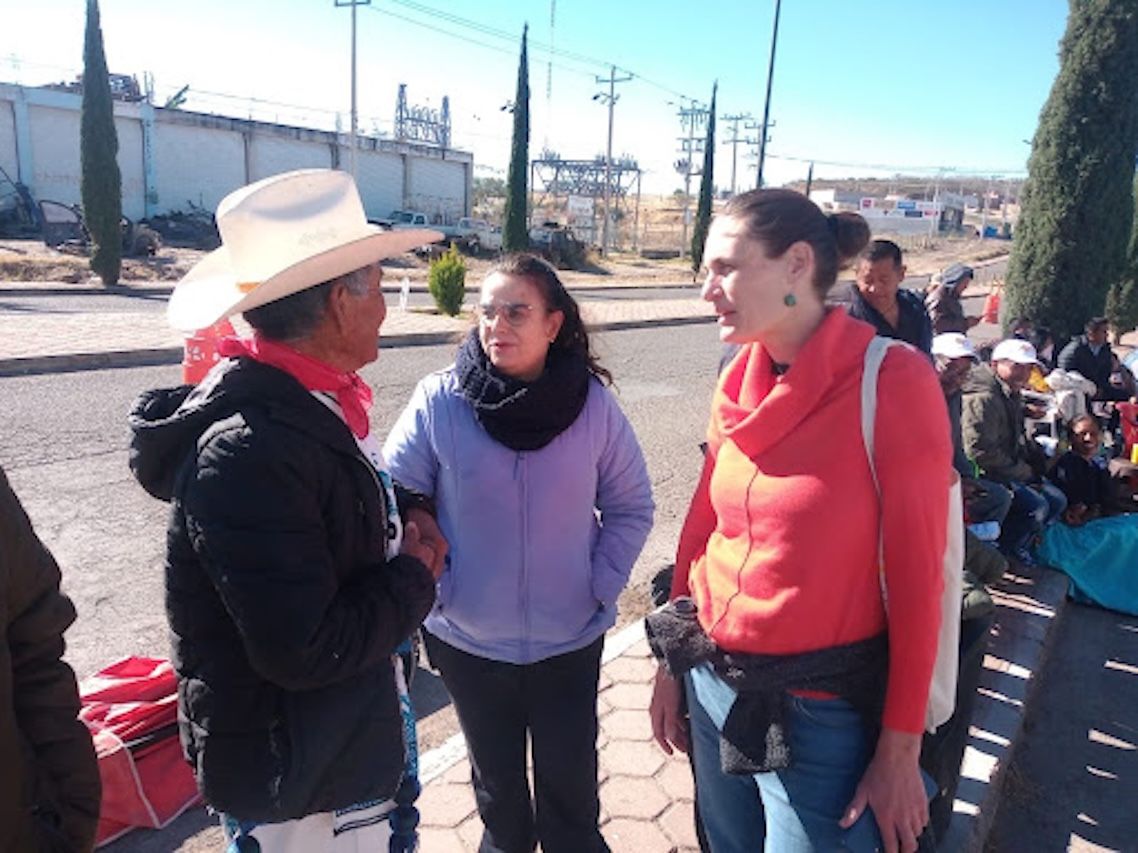 Alejandra Guillén (a la derecha) entrevista, con una colega investigadora del ITESO, a un hombre wixárika en la ciudad de Guadalajara. (Especial)