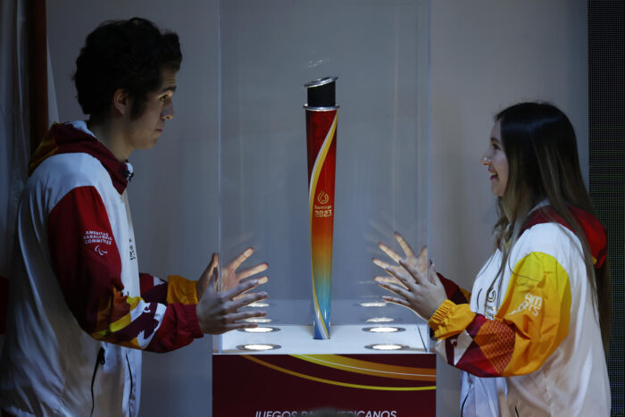 Con una longitud de 66 cm, las antorchas llevan inscritos en sus laterales la frase “Santiago 2023” en braille para impulsar la integración, valor que afirma promover la organización.