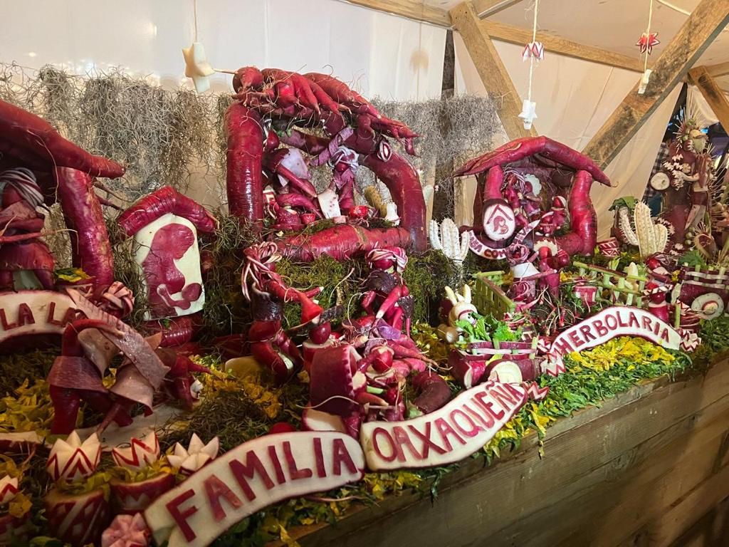 La Noche de Rábanos se realiza en el zócalo de la capital oaxaqueña y para este año doulas y médicas tardaron más de 15 horas cuidando cada uno de los detalles hasta lograr esta vistosa obra de arte que es admirada por miles de oaxaqueños, turistas nacionales e internacionales.