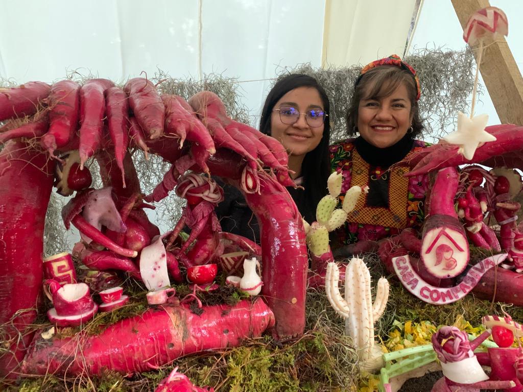 “Estamos felices de participar en esta Noche de Rábanos en la categoría de elaboración artesanal; quisimos hacerlo de esta temática con el objetivo de visibilizar este tipo de temas”, dijo Mayra Salvador Bautista de 26 años, doula o acompañante de partera.
