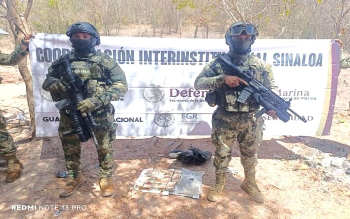 Elementos de la Secretaría de Marina, en coordinación con el Ejército Mexicano, la Guardia Nacional y otras corporaciones de seguridad, realizaron operativos en Cosalá y Escuinapa, Sinaloa, donde deshabilitaron antenas inhibidoras de frecuencia y aseguraron vehículos, armas, droga y campamentos utilizados por presuntos delincuentes.