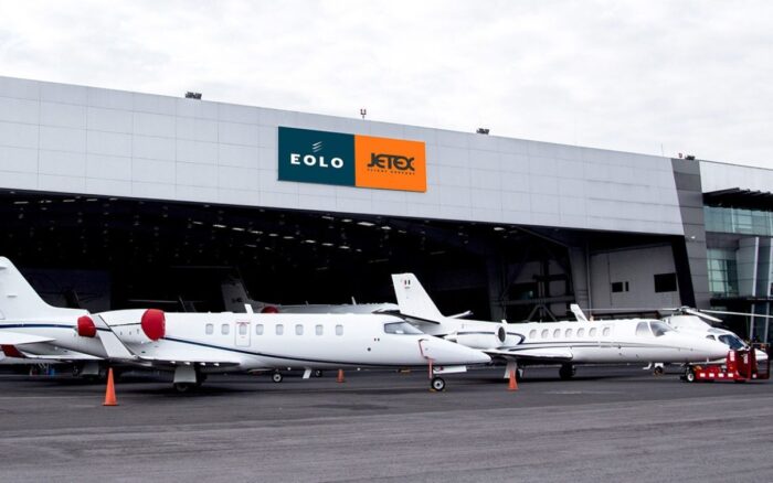 Ambas firmas son como una sola empresa, y muestra de ello es que en lo alto del hangar 62 del Aeropuerto de Toluca se aprecian la fusión de los logotipos de Eolo y Jetex.