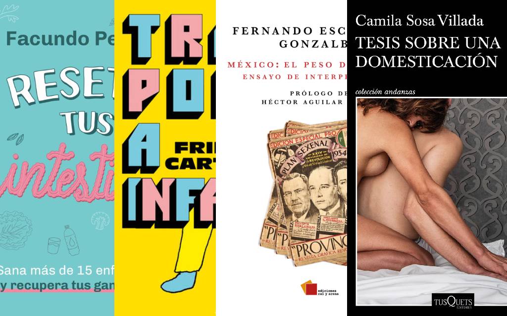Un nuevo libro de Camila Sosa Villada, Tesis sobre una domesticación es una historia de renuncia y compromiso que no se puede perder. Imprescindible también es el ensayo El peso del pasado, de Fernando Escalante Gonzalbo. Seguimos con Transporte a la infancia, un relato íntimo de Frida Cartas, por último, tenemos un libro serio y riguroso en materia de salud, Resetea tus intestinos del doctor Facundo Pereyra.