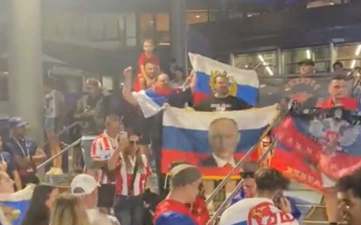 Las fotos en las redes sociales también mostraron a un aficionado en la multitud durante el partido de cuartos con una gran “Z” en su camiseta. Las fuerzas rusas usan la “Z” como símbolo identificativo en sus vehículos en Ucrania y algunos partidarios de la invasión también utilizan el signo.