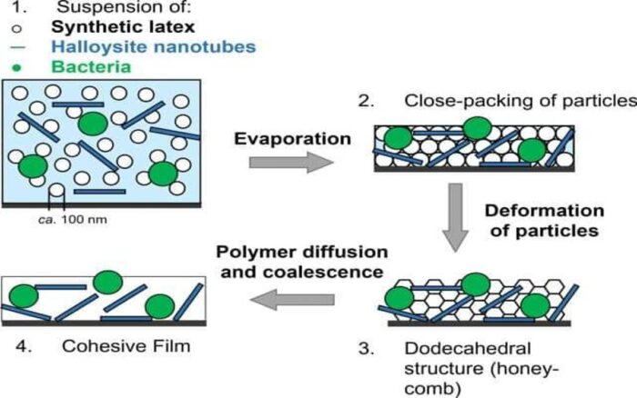 Para encapsular las bacterias de forma segura sin dañarlas diseñaron un biorecubrimiento, hecho con una mezcla látex con partículas de nanoarcilla para formar una matriz porosa y resistente.