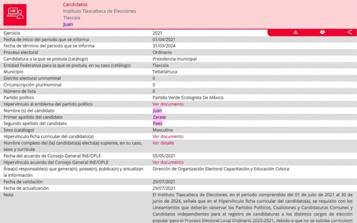 Asimismo, el registro del candidato puede consultarse a través de la Plataforma de Transparencia del Instituto Nacional de Transparencia (INAI).