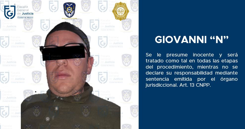 Giovanni ‘N’ quedó a disposición de la autoridad judicial que lo requirió en el Reclusorio Preventivo Varonil Norte, de acuerdo con un comunicado de la Fiscalía capitalina.