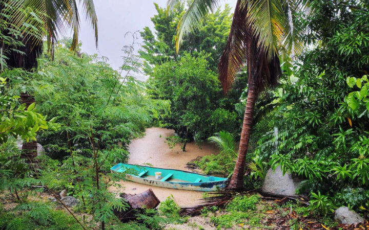 En Collantes, comunidad afro mexicana, el río Las Arenas desbordó, inundando decenas de viviendas de este municipio ubicado a 20 kilómetros de Pinotepa Nacional, en la Costa de Oaxaca.
