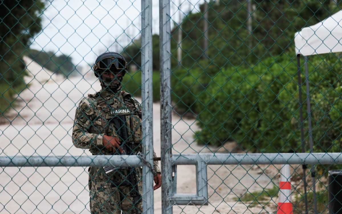 En las fotos de la agencia Reuters se aprecia a un elemento de la Marina custodiando la entrada a la planta.
