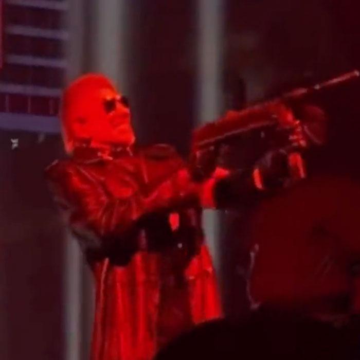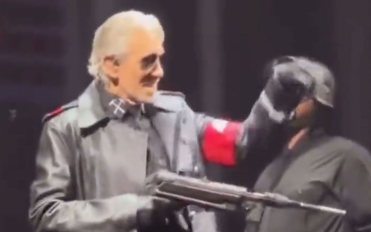 Imágenes de un concierto del 17 de mayo mostraban al famoso cantante y bajista con una larga gabardina negra, similar a la utilizada por los agentes de la SS, con bandas rojas brillantes en los brazos, apuntando al público con una ametralladora de imitación.