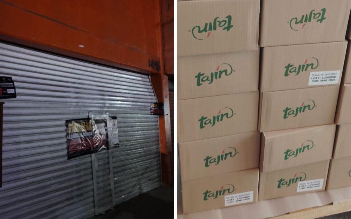 Entre los objetos asegurados hay 3,344 cajas de chile en polvo y salsa líquida con un valor aproximado de 800,000 pesos.