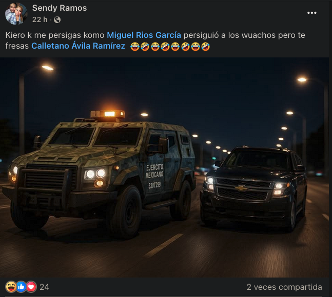 Los dos videos de Miguel Ríos tienen más de 2 millones de reproducciones y 20 millones de reacciones, pero también se observa una oleada de memes, reconociendo al ciudadano que persiguió a los soldados para no permitir una injusticia.