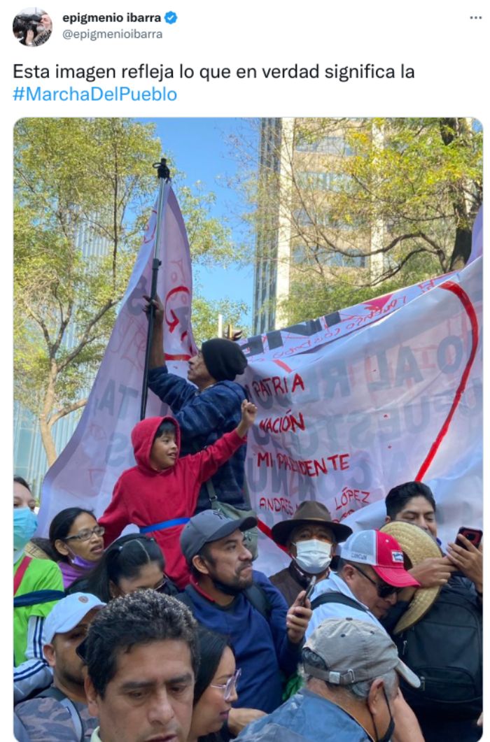 También expresó que su andar por la marcha no ha sido fácil, a través de un mensaje: “Me he perdido muchas veces entre la multitud con AMLO. Nunca como ahora. A mi me vencieron los empujones a el lo fortalecen. Vamos a seguirlo!”.