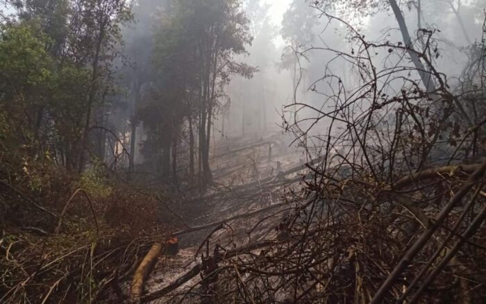 Probosque mencionó que en el combate ampliado “se realizan labores que consisten en la apertura de brechas cortafuego y de rescoldeo que consisten en apagar puntos de calor activos”.