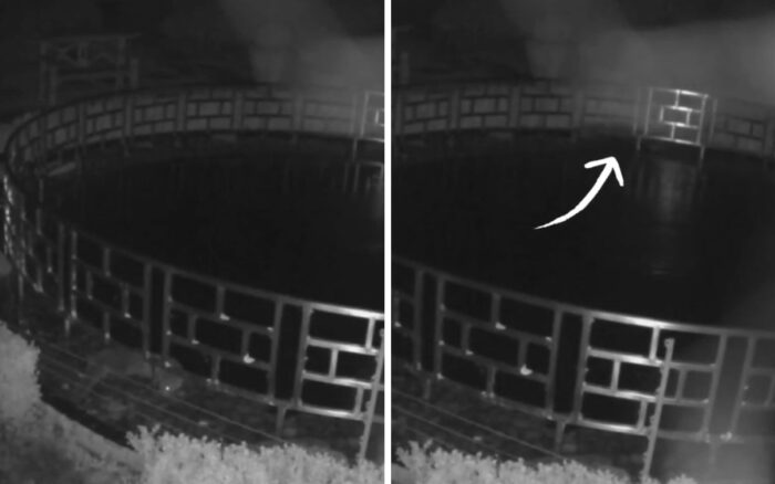 Una astuta nutria fue capturada “in fraganti” gracias a un sistema de vigilancia por CCTV que se instaló en un hotel para identificar al culpable detrás de la misteriosa desaparición de 50 carpas koi valuadas en aproximadamente 100 mil libras (dos millones 106 mil pesos mexicanos, aproximadamente).
