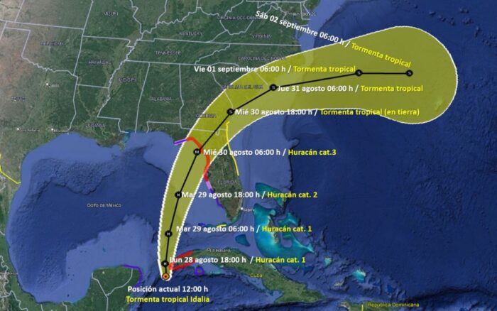 La tormenta tropical ‘Idalia’ se intensificará a huracán durante la tarde de este lunes, mientras cruza por el Golfo de México, ocasionando lluvias muy fuertes en la Península de Yucatán.