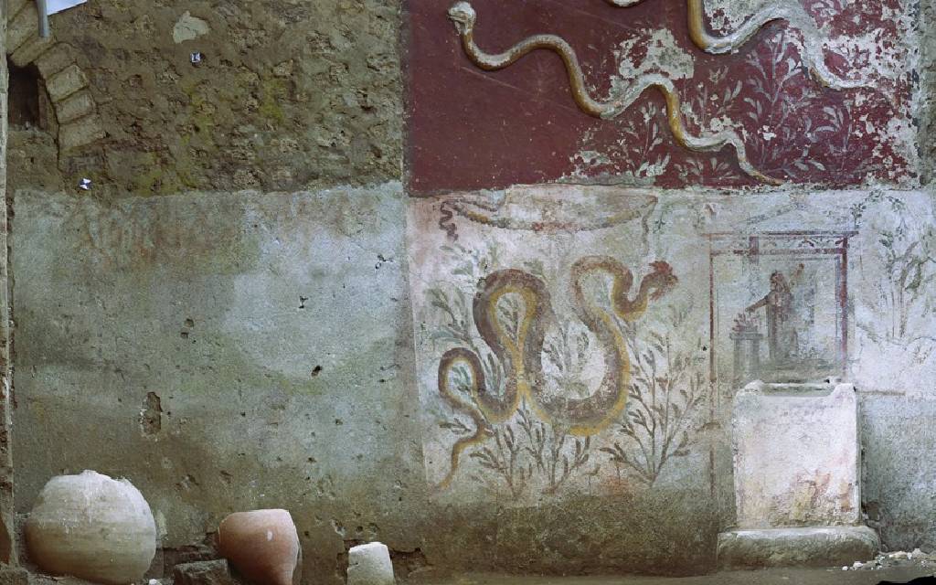 En el altar del gran Larario, caracterizado por dos serpientes de estuco, se han encontrado, además, restos de una última ofrenda votiva, probablemente ocurrida poco antes de la erupción y que consistía principalmente en higos y dátiles quemados ante el altar.
