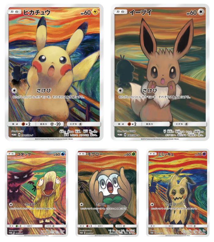 Esta no es la primera ocasión en que la franquicia de videojuegos de Nintendo colabora con un museo, ya que en 2018 lanzaron junto con el Museo de Arte de Tokio una colección especial de cinco tarjetas para celebrar la exposición del pintor Edvard Munch, pintor del icónico lienzo de ‘El Grito’. En esa ocasión las cartas estaban protagonizadas por cinco de los favoritos de los fans: Psyduck, Eeve, Mimikyu, Rowlet y Pikachu.