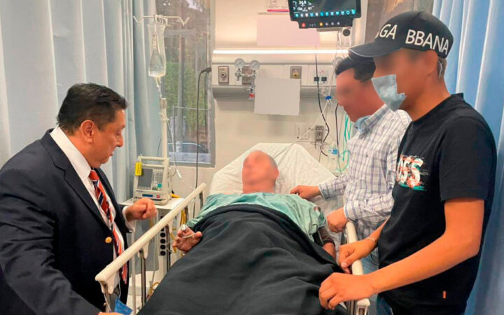Mostró a medios una foto del obispo, en una cama de hospital.