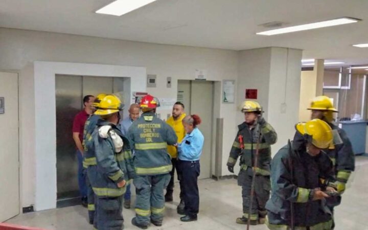 El personal utilizó las llaves del elevador para rescatar a las tres personas atrapadas, dos mujeres y un hombre, aparentemente trabajador del hospital.