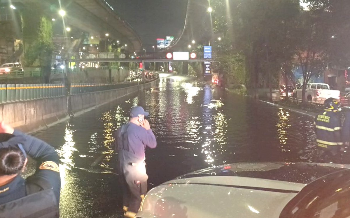 Periférico Sur muestra encharcamientos y fuertes inundaciones, siendo avenida Toluca uno de los puntos más afectados.